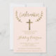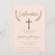 Faux or feuille typographie élégant rose roux avec confirmation de croix d'or. Une invitation de baptême moderne avec cette main de brosse en or jaune, moderne, simple, élégant et chic, en lettrage de typographie sur un arrière - plan rose pastel. Parfait pour une soirée simple, élégante et moderne. Si vous avez besoin d'un texte modifié et customisé n'hésitez pas à me contacter!