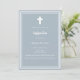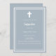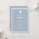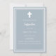 Arrière - plan bleu Dusty, décoré d'un cadre blanc, et d'une croix blanche Personnalisez et ajoutez le nom et les détails. Texte blanc.