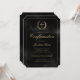 Invitation vos invités à la confirmation catholique de votre fils avec cette élégante carte d'invitation. Ce modèle de design présente un arrière - plan en marbre noir avec une fausse croix d'or avec une couronne de laurier au sommet et les détails de votre célébration ci-dessous en style faux or élégant pour vous permettre de personnaliser encadré dans une fine bordure de découpe d'or. Sur le dos de la carte se trouve du marbre blanc et gris. J'adorais concevoir cette invitation pour toi. J'espère que vous en profitez ! Conçu par l'artiste ©Susan Coffey.