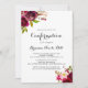 Cette invitation à la confirmation florale bordeaux rustique est parfaite pour un événement religieux moderne. Le design est composé de fleurs rose, rousse, rouge, bordeaux et bordeaux à aquarelle avec feuillage vert.