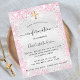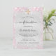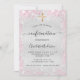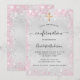 Une confirmation moderne et élégante, célébrant une fille. Arrière - plan métallique argent Faux décoré de poussière de parties scintillant rose et d'une croix dorée. Personnalisez et ajoutez un nom et des détails du parti. Lettres de couleur noire.