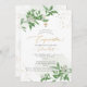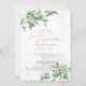 Invitation de confirmation PixDezines, avec une aquarelle verdure luxuriante et des fleurs blanches, une fausse croix d'or, poussière d'or et cadre accentué avec script de calligraphie de luxe. Tous les éléments modifiables et amovibles.