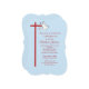 Cette invitation de confirmation simple et élégante pour votre fils est entièrement personnalisable. Ajoutez-vous les détails et le nom, pour cet événement chrétien spécial. Placée sur un arrière - plan bleu clair, cette croix rouge et le texte se démarquent avec la couleur Confirmation et déclenche la colombe blanche.