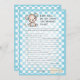 Who Knows Mommy Best? est un jeu de baby shower de pique-nique avec un ours en peluche mignon et une sucette avec un arrière - plan motif à chèque bleu et blanc. Des modèles ont été fournis sur le dos.