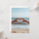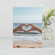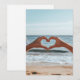 Deux mains se rassemblent pour former un coeur en forme de fond de plage serein, symbolisant l'amour, la connexion et la tranquillité au bord de la mer
