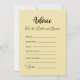 Voici "Conseil pour la mariée et la mariée", un jeu de douche nuptiale plein de coeur et réfléchi conçu pour favoriser de véritables connexions et fournir un espace sûr et non conflictuel pour la famille, les amis et les proches pour partager leur sagesse et leurs voeux avec le couple qui va se marier. Contre un arrière - plan chaleureux et accueillant de couleur vanille, les mots "Conseil pour la mariée et le marié" sont élégamment présentés dans une jolie police de caractères noir, créant un sentiment d'intimité et d'élégance pour toute célébration. Grâce à ses options polyvalentes, vous pouvez choisir de commander des cartes imprimées professionnellement, d'extraire un look poli et sophistiqué, ou opter pour la version numérique pour imprimer autant de copies que nécessaire, offrant la commodité et la personnalisation. "Conseil pour la mariée et la chambre" devient un gardien chéri, un trésor d'amour et de conseils à recueillir pendant la douche nuptiale, le wedding shower, ou le jour du mariage lui-même, s'assurant que le couple a un rappel sincère de l'amour et du soutien qu'ils reçoivent de leurs proches. Chaque carte est soigneusement divisée en sections avec des titres : "Toujours", "Parfois" et "Jamais", offrant aux invités la possibilité de donner leur avis sur divers aspects de la vie conjugale. La section "N'oubliez pas" devient un doux rappel des conseils et suggestions essentiels, tandis que l'espace "Je vous souhaite les deux" devient une collection sincère de bénédictions et d'aspirations, symbolisant l'amour et l'espérance de tous présents. Au bas de chaque carte, le mot "Amour" attend, invitant les invités à signer leur nom, laissant une touche personnelle d'affection et de soutien. Les cartes complétées forment une collection magnifique et significative, offrant à la mariée et au marié une représentation tangible de l'amour et des encouragements qu'ils ont reçu de leur famille et amis chéris. "Conseil pour la mariée et la chambre" transcende les limites des jeux de douche nuptiale traditionnels, faisant de l'expérience une occasion sentimentale et sentimentale. Faites preuve de joie en partageant l'amour et la sagesse avec ce jeu, ce qui en fait un élément essentiel de vos célébrations. Laissez les paroles de vos proches être une source constante d'inspiration, car le couple chérit et revisite ces messages sincères, maintenant et pour les années à venir.