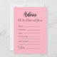 Introduire "Conseil pour la mariée et la mariée", un jeu de douche nuptiale plein de coeur et touchant qui va au-delà du divertissement, créant un espace sûr et non conflictuel pour la famille, les amis et les proches pour partager leurs précieux conseils et leurs voeux de bonheur avec le couple heureux. Contre un arrière - plan rose fleur de cerisier serein, les mots "Conseil pour la mariée et le marié" sont élégamment écrits en joli caractères noir, dégageant un sentiment de chaleur et de grâce, ce qui en fait un complément parfait à toute célébration. Ce jeu est pensé pour être plus qu'une simple activité momentanée ; il devient un gardien chéri pour le couple, recueillant des messages sincères non seulement pendant la douche nuptiale ou le wedding shower, mais tout au long de leur vie conjugale. Avec l'option de commander des cartes imprimées professionnellement ou d'acheter la version numérique pour l'auto-impression, "Conseil pour la mariée et la chambre" offre la commodité et la personnalisation, en s'assurant qu'il devient une partie significative de votre journée spéciale. Chaque carte comporte des espaces réservés aux invités pour partager leurs conseils sous différentes rubriques : "Toujours", "Parfois" et "Jamais", offrant au couple une gamme d'idées pour les guider dans leur voyage de toute une vie. La section "N'oubliez pas" sert de doux rappel des conseils essentiels, tandis que l'espace "Je vous souhaite les deux" se transforme en une collection sincère de bénédictions et d'aspirations, représentant l'amour et l'espérance de tous les présents. Au bas de chaque carte, le mot "Amour" attend, invitant les invités à signer leur nom, ajoutant une touche personnelle d'affection et de soutien. Ces cartes complétées deviennent une belle collection sentimentale, capturant l'amour et la sagesse partagés par la famille et les amis, ce qui en fait un trésor chéri pour le couple à revisiter et trésor tout au long des années. "Conseil pour la mariée et la chambre" élève le jeu de douche nuptiale typique, favorisant une connexion sincère entre le couple et leurs proches. Faites preuve de joie en partageant l'amour et la sagesse avec ce jeu, ce qui en fait un élément essentiel de vos célébrations. Que les paroles de vos chers soient une source constante d'inspiration pour le couple qui lit et chérit ces messages sincères, maintenant et pour toutes les belles années qui nous attendent.
