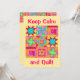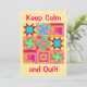Invitation un amoureux de courtepointes ou de courtepointes à votre événement avec cette invitation à courtepointe colorée entièrement personnalisable proclamant "Conserver le calme et la courtepointe". Customisez pleinement sur le devant et le dos pour ajouter vos propres mots, noms et autres informations. Cet art original de courtepointes fait une invitation vibrante. L'art de la surface composée à partir de l'art original présente des blocs de surface de patchwork préférés, ainsi que des blocs uniques aux couleurs vibrantes et dynamiques d'orange, jaune, rose, turquoise et vert citron pour une palette belle et colorée. Customisez toutes les informations pour votre événement sur le côté arrière d'un arrière - plan jaune. Montrez votre amour de la courtepointe avec ces créations d'art de courtepointe avec d'autres produits d'art de courtepointe. L'art de la courtepointe est l'art original de Phyllis Dobbs, concepteur de tissus et de courtepointes. Cet art est disponible sur d'autres produits et dans plusieurs arrière - plans de couleurs. D'autres produits sont disponibles dans Phyllis' BusinesswithFlair store. Correspondance avec la coordination des timbres, enveloppes, autocollants et étiquettes d'adresse de retour.