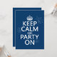 On peut lire "Keep Calm" et "Party On", dans le style de l'affiche classique "Keep Calm". Les mots sont décorés de scintilleuses ou de feux d'artifice. C'est un beau design lumineux, qui fait une grande variété de produits pour n'importe quelle fête, que ce soit pour l'anniversaire, Noël, le nouvel an, ou n'importe quand.