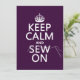 On peut lire "Keep Calm and Sew On", dans le style de l'affiche classique garder calme. En guise de touche supplémentaire, il y a une ligne de points de suture à travers le mot Sew, se terminant par une aiguille sur le côté. C'est un design sucré, qui plaira à tous ceux qui aiment coudre pour le plaisir ou pour le travail.