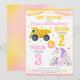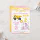 With soft watercolor details, colorful stars, and a bold split layout for easy personalization, this invite is ideal for a construction unicorn birthday, sibling joint party, trucks and magical theme, girly construction party, editable kids birthday invitation, and a pink and yellow birthday celebration.