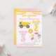 With soft watercolor details, colorful stars, and a bold split layout for easy personalization, this invite is ideal for a construction unicorn birthday, sibling joint party, trucks and magical theme, girly construction party, editable kids birthday invitation, and a pink and yellow birthday celebration.