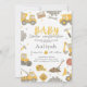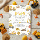 designed especially for a fun and playful baby boy shower. Inspired by the excitement of construction sites, this cheerful design features charming construction truck elements and bold, friendly details that set the tone for a joyful celebration.