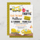 Cette mignonne invitation d'anniversaire comprend des camions de construction et des confettis colorés.