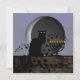 Une silhouette du chat noir de Théophile Steinlen pour le club Le Conversation Noir dans un cadre moderne pour Hanoukka/Chanukah avec le chat noir avec une menorah éclairée et une lune en déclin.