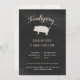 Cette invitation à l'action d'amitié simple et élégante pour un grand dîner d'action de grâces avec des amis présente un arrière - plan noir de tableau noir, une silhouette de cochon de ferme et un script rustique branché. Le fond de l'invitation a un aspect patiné en bois blanc.