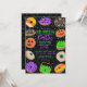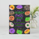 Cette invitation à la fête d'Halloween cool et mignonne est parfaite pour un événement amusant et doux. Il présente des beignes d'illustration de jack o' lantern citrouille, de fantôme, d'araignée, de maïs bonbon, de monstre et d'oeil sur des confettis de parties scintillant brillant imbriqués et de typographie de parties scintillant avec un simple arrière - plan noir. Il inclut également la citation, "Trick or traiter. Tu ne veux pas rater ça !" Les couleurs sont le vert, le violet, le jaune, l'orange, le marron, le rouge, le noir et le blanc. C'est ludique, unique, drôle et moderne. Profitez de ce design dessiné à la main par l'artiste de La Femme, Rachel Matheney. ***REMARQUE IMPORTANTE DE CONCEPTION : Pour toute demande de conception personnalisée comme les demandes de produit correspondant, les changements de couleur, les changements de placement ou toute autre demande de modification, veuillez cliquer sur le bouton "Message" ou envoyer un courriel au concepteur directement à lafemme.art@gmail.com. Vous pouvez même lui envoyer par courriel une demande pour un design entièrement personnalisé et nouveau.