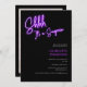 Chut, c'est une surprise ! Écriture cool néo violet rétro noir photo Sweet 16 neon invitation anniversaire.