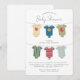 Invitez tous vos proches à votre Baby Shower avec ces douces invitations illustrant une corde à linge avec des bodies de bébé pour vos personnages préférés de Rue Sésame. Personnalisez avec tous les détails de votre shower !