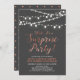 Célébrez votre jour spécial avec cette invitation de fête d'anniversaire surprise élégante ! Ce design présente une typographie de script élégante et des guirlandes lumineuses sur un fond gris foncé. Parfait pour une fête de jardin, une fête de grange ou toute autre fête surprise.