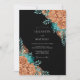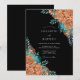 Evoke a sense of opulent romance with this stunning design featuring rich copper roses and vibrant teal foliage. The luxurious color palette creates a sophisticated and whimsical atmosphere for your special day.