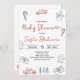 Invitation Coquette Baby shower de Noël rouge et bleu rustiqu