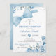 Bow Blue Coquette First Holy Communion Invitation, Silver Cross Holy Communion, Editable Elegant Blue Flowers First Communion