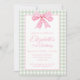 Faites-vous plaisir avec notre Coquette 21st Birthday Party Invitation au charme fantaisiste de votre enfant ! Ce design enchanteur se compose d'un arc rose clair contre un arrière - plan en vichy vert sage, capturant l'essence de Balletcore Elegance et l'esthétique coquette d'une manière ludique et enfantine. Donnez le ton pour une fête joyeuse pendant que vous invitations amis à rejoindre les festivités.