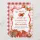 Invitation Coquette Red Plaid Bow Apple 1st Birthday