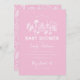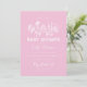 Un Baby shower d'invitation "Coquette rose moderne main dessinée" mélange typiquement des éléments fantaisistes et ludiques à une esthétique contemporaine. La taille 5x7 est un choix standard et populaire, offrant suffisamment d'espace pour tous les détails importants tout en maintenant un élégant format compact, cependant d'autres formats sont disponibles. Le design est dominé par des tons doux et roses, créant une atmosphère douce et féminine. "Coquette" évoque une atmosphère flirtante et charmante, avec des illustrations délicates et dessinées à la main d'éléments. Police manuscrite de typographie moderne avec polices sans-serif minimalistes pour un look équilibré et sophistiqué. Cette invitation évoque un sentiment de chaleur et d'excitation pour la célébration à venir, mêlant la joie d'un baby shower à un design artistique et tendance.
