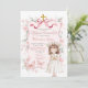 Coquette Bow rose Première Communion Invitation, Primera Ruban rose Comunion de Invitaciones, Invitation première communion rose Floral