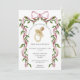 Coquette vintage Elégante Pink Ribbon Bow Verdure Baby Girl Baby shower Invitation avec une sucette, main dessinée par Savanamm