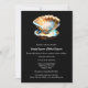 Un design simple, simple et élégant d'une seule mère irisée de coquille de palourde couleur perle qui semble briller, briller et scintiller est mis contre un arrière - plan noir qui fait la pop graphique. Les modèles de script de calligraphie gris pâle apparaissent sous le graphique qui peut être personnalisé pour votre occasion. Le modèle arrière doit être supprimé si aucune information supplémentaire n'est requise pour vos invités. Elles sont idéales pour la plage, nautique, maritime, balnéaire, sous la mer, île tropicale ou destination côtière mariages, anniversaires et événements spéciaux.