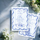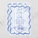 Invitation Coquillages bleu ondulé bordé mariage de plage ave