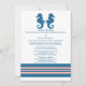 Élégant et classique Faire-part de mariage nautique avec une paire de chevaux de mer simples et une série de rayures en bleu marine foncé et corail. Cet invitation à thème de plage nautique peut être facilement customisé avec vos détails de mariage. Pour plus d'options de personnalisation, cliquez sur le bouton Customiser.