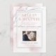 Ajoutez votre photo à cette belle Invitation de la Partie Engagement - Dispose d'une branche de saule dessinée à la main en gris arctique qui grace le sommet de cette Invitation de la Partie Engagement avec un rose subtil arrière - plan d'aquarelle corallien. Un double cadre en étain assez translucide pour voir la branche et l'aquarelle derrière, recouvre vos détails fiançailles écrits dans une police contemporaine. Conception créée pour BarefootBride™ par © WhimsicalArtwork™ Personnaliser texte, style de police, couleur et taille. Nous avons créé ce modèle pour vous faciliter la personnalisation avec vos propres informations. Il fait partie d'une suite de papeterie Mariage complète avec mariage, baby shower et autres articles de papeterie d'événements correspondants.