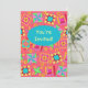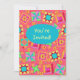 Invitation un amoureux de courtepointe ou de courtepointe avec cette invitation colorée entièrement personnalisable. Customisez pleinement sur le devant et le dos pour ajouter vos propres mots, noms et autres informations. Cet art original de courtepointes fait une invitation vibrante. L'art de la surface composée à partir de l'art original présente des blocs de surface de patchwork préférés, ainsi que des blocs uniques aux couleurs vives et dynamiques d'orange, jaune, rose, turquoise et vert citron sur un arrière - plan de corail rouge pour une belle palette de couleurs. Un ovale bleu turquoise turquoise est sur le devant de la carte pour dire "Vous êtes invité" ou d'autres mots de votre choix. Montrez votre amour de la courtepointe avec ces créations d'art de courtepointe avec d'autres produits d'art de courtepointe. L'art Quilt est l'art original de Phyllis Dobbs, concepteur de tissus et de courtepointes, et il se trouve dans une collection de tissus de Quilting Treasures. Cet art est disponible sur d'autres produits et dans plusieurs arrière - plans de couleurs. D'autres produits sont disponibles dans Phyllis' BusinesswithFlair store. Correspondance avec la coordination des timbres, enveloppes, autocollants et étiquettes d'adresse de retour.
