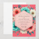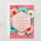 Vibrant coral blooms burst with teal and soft white accents, creating a lively and romantic atmosphere. This design evokes a sense of joy and playful elegance, perfect for a memorable occasion. The artistic floral arrangement adds a touch of botanical charm.