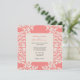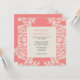 Ces invitations au mariage modernes de Coral Fleur de Lis présentent un motif à la Damas, en papier de riz blanc, sur un arrière - plan de corail. Ajoutez vos informations à l'aide du modèle. Cliquez sur "customiser" pour modifier la police et le placement du texte.