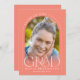 Cette carte de graduation simple et minimaliste en corail branchée sert à la fois de faire-part de graduation et d'invitation à la grande fête, et dispose d'une photo, arche cadre et élégante typographie moderne.