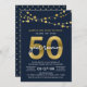 Elégante invitation de Réunion de classe 50 ans avec des cordes de lumières et "50" en fausse feuille d'or avec "la réunion de l'année" en blanc contre un arrière - plan bleu foncé sur le devant et un motif de pois bleu foncé et faux or. Consultez d'autres éléments correspondants ici https://www.zazzle.com/collections/school_reunion-119258151199573326?rf=238364477188679314 Personnalisez-le en remplaçant le texte de l'espace réservé pour ajouter vos informations. Pour plus d'options comme changer la police et sa taille/couleur ou l'espacement entre les lettres cliquez sur le bouton "Personnaliser". *Veuillez noter que le filigrane Zazzle qui apparaît dans l'aperçu du zoom n'apparaîtra PAS sur le produit imprimé final. © Bois de rose et agrumes