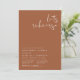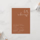 Cette invitation à dîner de répétition présente une police manuscrite pointue et un design minimaliste moderne. Modifiez facilement le libellé *most* pour répondre à vos besoins et modifiez toutes les couleurs à votre goût. Le ton bohème de la terre brûlée couleur orange en fait l'ajout parfait à votre boho, désert, ou mariage terreux.