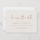 Ce changement de date comporte une police manuscrite pointue et un design minimaliste moderne. Son ton bohème en terre brûlée orange et beige coloré en fait l'endroit parfait pour sauver la date de votre suite mariage de désert ou boho. *La plupart* des mots est modifiable et toutes les couleurs peuvent être ajustées à votre goût. Ajoutez une photo à l'arrière et listez votre site mariage pour une touche spéciale.