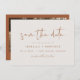 Cette date de sauvegarde comporte une police manuscrite pointue et un design minimaliste moderne. Son ton bohème en terre brûlée orange et beige coloré en fait l'endroit parfait pour sauver la date de votre suite mariage de désert ou boho. *La plupart* des mots est modifiable et toutes les couleurs peuvent être ajustées à votre goût. Ajoutez une photo à l'arrière et listez votre site mariage pour une touche spéciale.