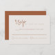 Cette carte de réponse RSVP de mariage présente une police manuscrite audacieuse et un design moderne minimaliste. Son ton terre bohemien orange brûlé et beige en fait la carte RSVP parfaite pour votre mariage contemporain ou industriel. La *plupart* des textes sont éditables et cette carte de réponse peut être utilisée pour n'importe quelle occasion. Utilisez facilement pour votre douche de mariée, douche bébé, fête de retraite, etc.