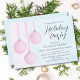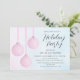 Corporate Modern Script Holiday Christmas Party Invitations présente des décorations de Noël en parties scintillant rose sur un arrière - plan bleu doux et personnalisées avec élégant script de calligraphie à la main moderne. Personnalisez en modifiant le texte dans les zones de texte fournies pour vos invitations de fête de Noël d'entreprise ou de fête de vacances personnalisées. Conçu par ©Evco Holidays www.zazzle.com/store/evcoholidays