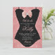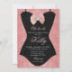 Un fond scintillant rose gold avec une œuvre d'art en forme de corset en dentelle noire est une façon mignonne d'inviter vos invités à une Lingerie Bridal Shower.