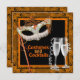 Costumes et cocktails orange et noir modèle d'invitation du costume d'Halloween. Cette invitation à la fête d'Halloween mascarade orange est facilement customisée pour votre événement. Ajoutez vos propres mots dans le style de texte, la taille et la couleur de votre choix !