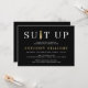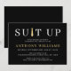 Rassemblez les garçons d'honneur avec style grâce à ce carton d'invitation élégant "Enfilez votre costume" pour l'enterrement de vie de garçon. Avec un fond noir épuré et une typographie sérifée blanche et dorée, ce design est parfait pour une soirée chic, une soirée casino ou un dîner formel. Le point central présente un graphique minimaliste de cravate dorée, donnant un ton "cravate noire" ou formel à l'événement. Tout le texte - y compris le nom du marié, la date, le lieu et les détails de RSVP - est 100 % personnalisable pour s'adapter à votre itinéraire spécifique.