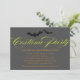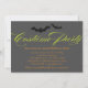 Cette conception comporte les mots "costume party" en vert un script. Deux chauves-souris noires s'installent juste au-dessus d'elles et les détails de votre fête en orange s'assoient en dessous. Placez-vous sur un arrière - plan gris foncé. Graphiques ©Cheri Wenger.